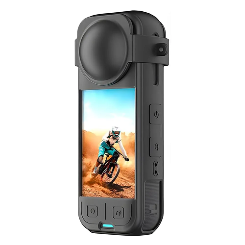 - قاب ژلهای مخصوص Insta360 X5 با طراحی نرم و سبک که محافظت کامل از دوربین را در برابر ضربه، خط و خش و آب خفیف فراهم میکند.